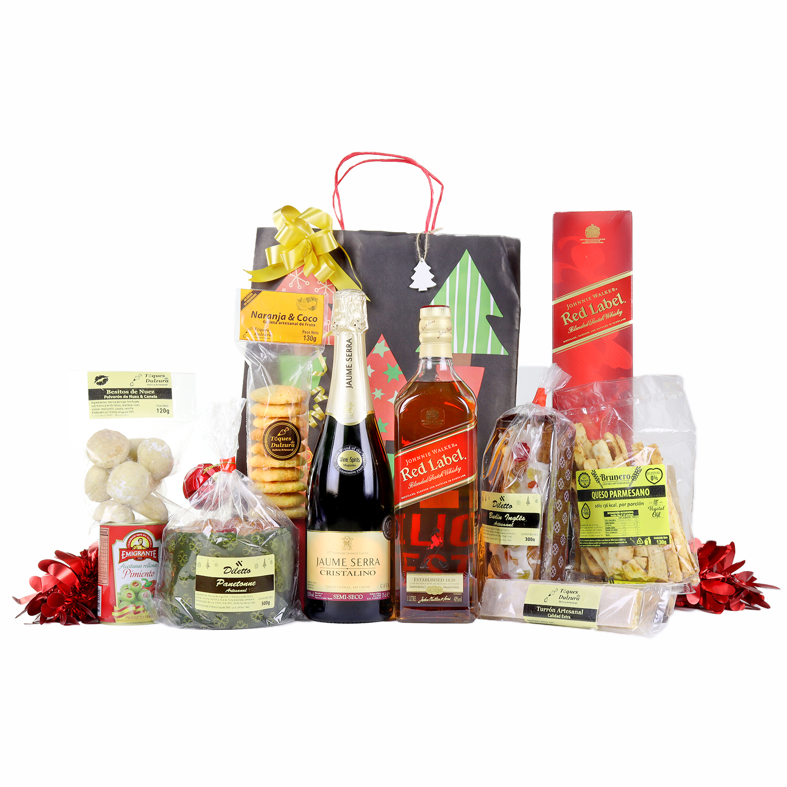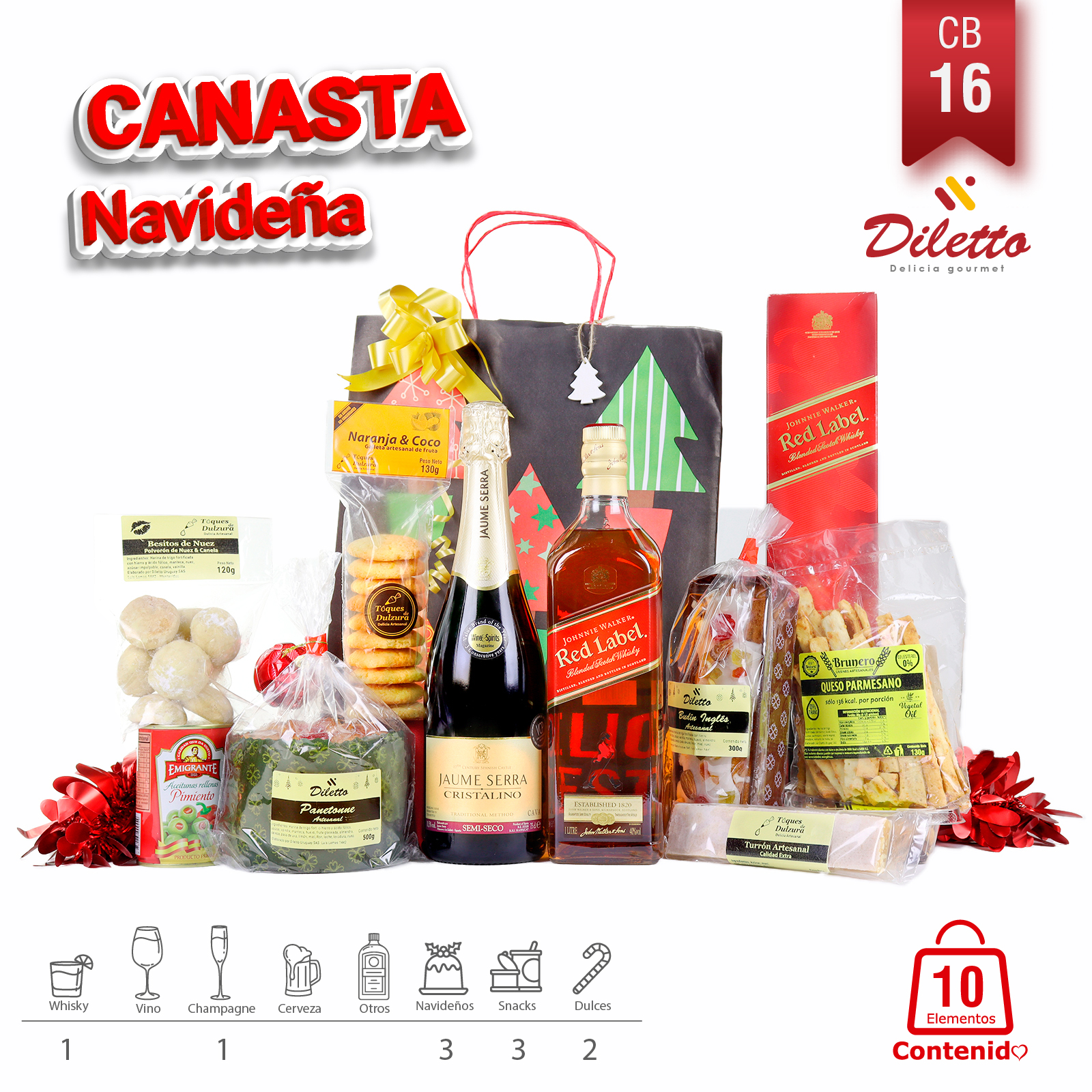 Experimenta la magia de la Navidad con la Bolsa Navideña CB16, un compendio de exquisiteces artesanales. Desde el Panettone hasta las Aceitunas Españolas, maridados con Whisky Johnnie Walker y Champagne Castelfino. Presentada en bolsa ecológica decorada con motivos navideños.