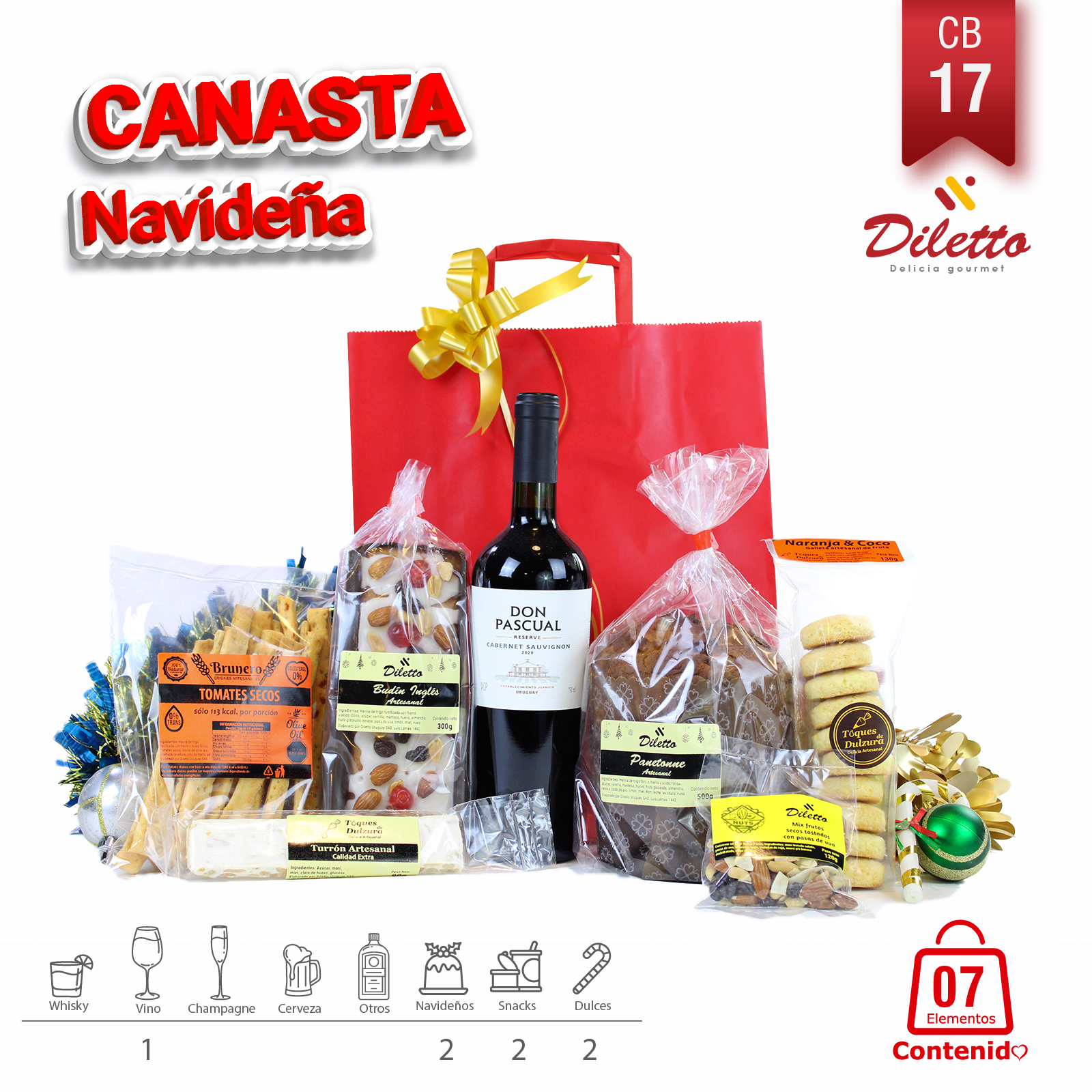 La Bolsa Navideña CB17 es un festín de sabores artesanales, con Panettone, Budín Inglés y más, maridados con el exquisito Vino Don Pascual Reserve Cabernet Sauvignon. Embalada en una bolsa ecológica con alegres motivos navideños. Un regalo navideño que combina la exquisitez de un vino Cabernet Sauvignon con delicias artesanales para un momento inolvidable.