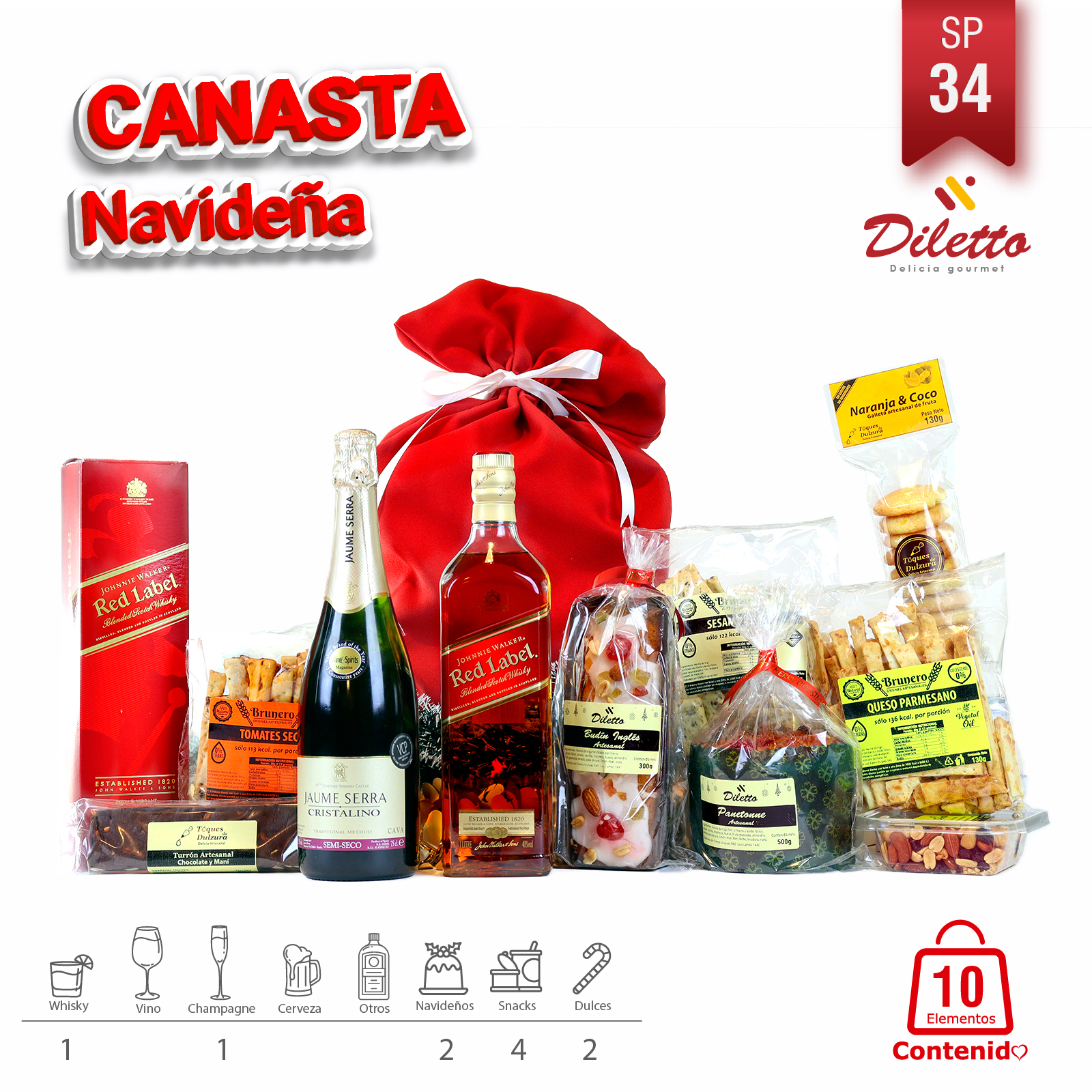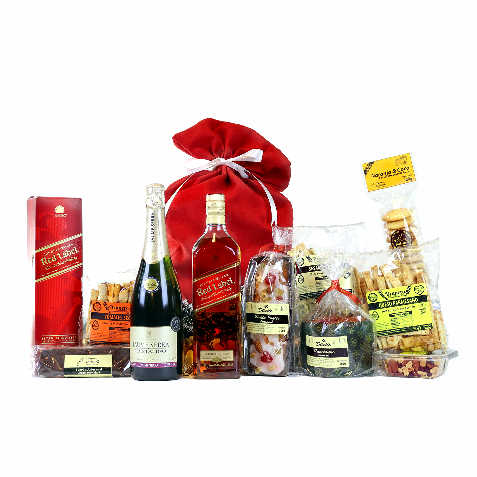 El Saco Navideño es la expresión máxima de la festividad y el lujo. Abriendo con el renombrado Whisky Johnnie Walker Red Label y el espumoso Champagne Castelfino Cava Brut, promete ser el centro de atención en cualquier celebración.