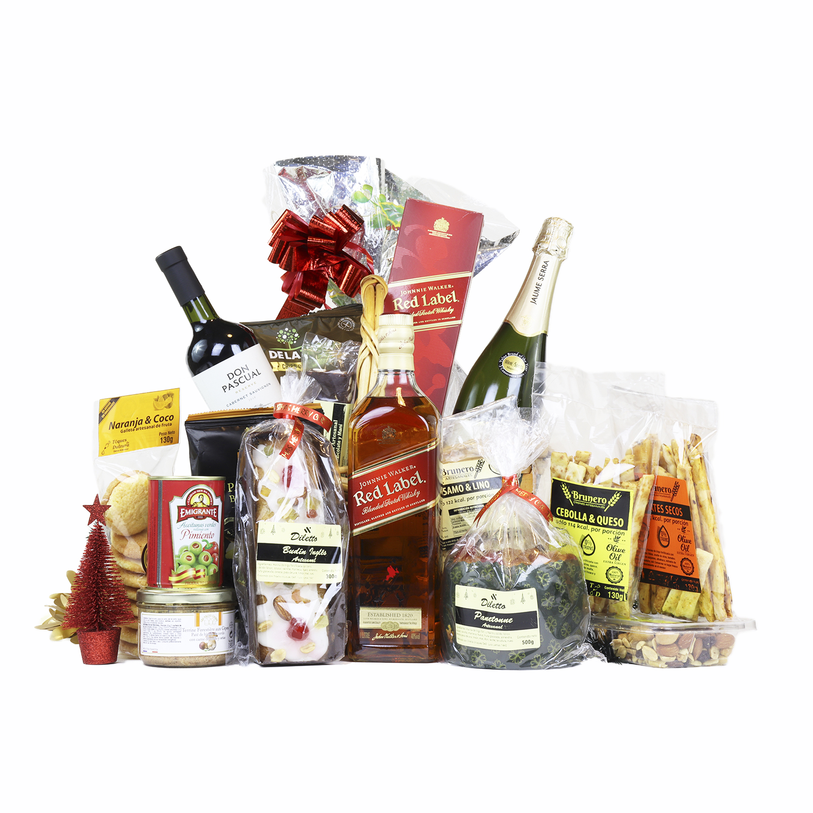 La canasta incluye Whisky, Champagne y Vino, una selección de bebidas que garantiza un brindis excepcional.