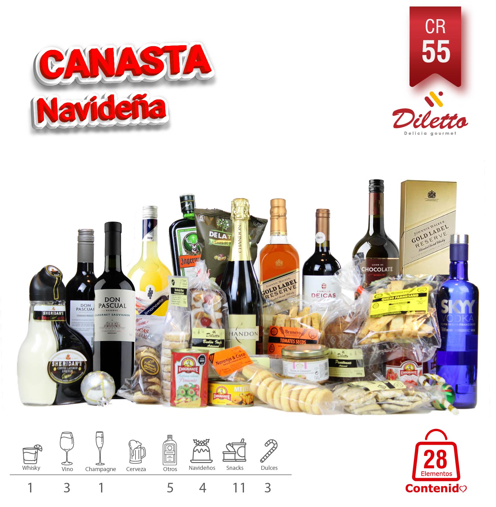 Canasta Navideña Exclusiva CR55 – Delicias Gourmet y Licores Selectos